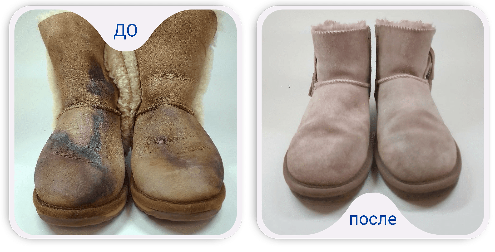 - Химчистка угги. Эта обувь страдает от соли больше всего. Мы проводим экстракцию Pin-Up восстанавливаем форму и наносим водоотталкивающее покрытие.