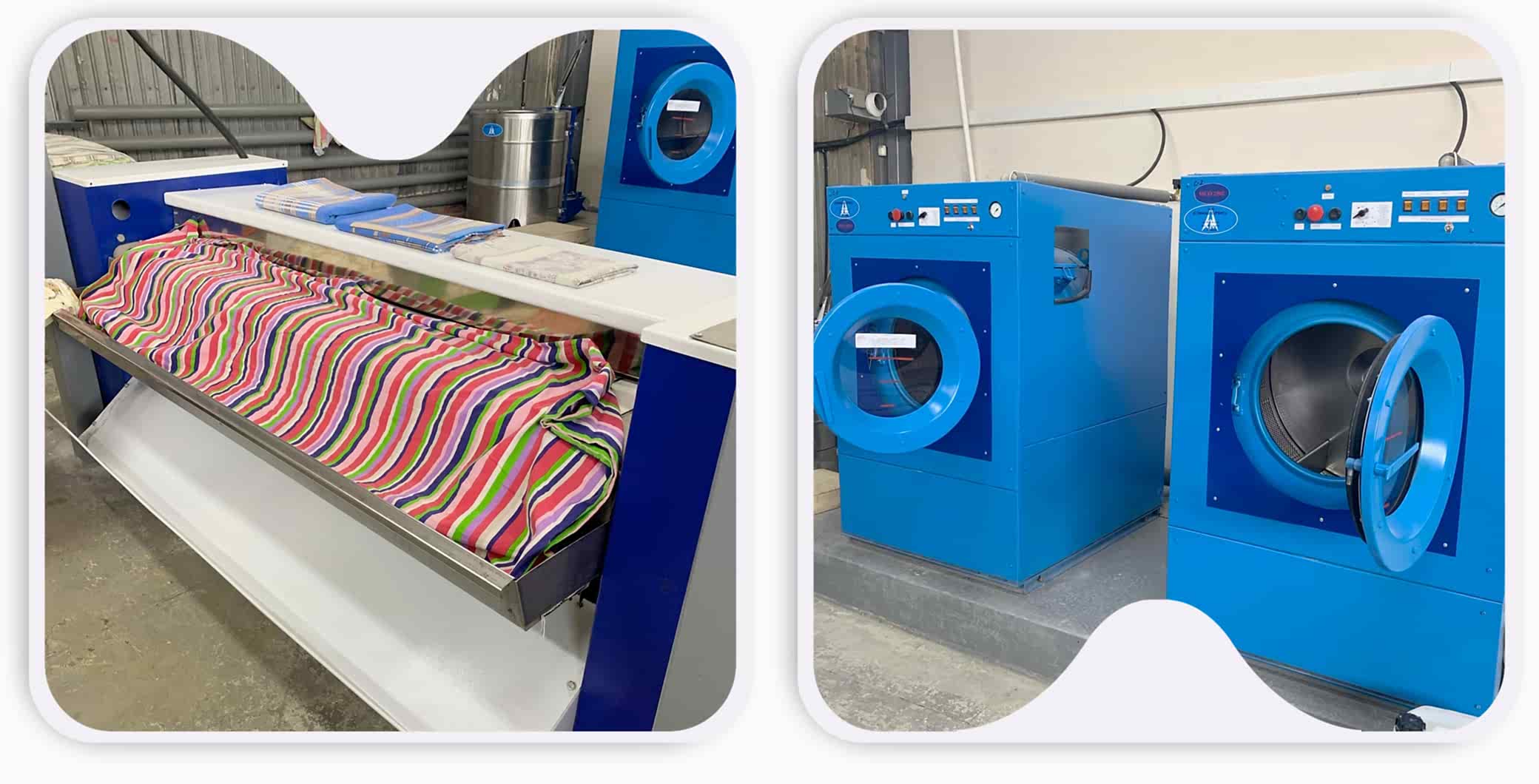 Прачечная оборудована профессиональным мощным оборудование