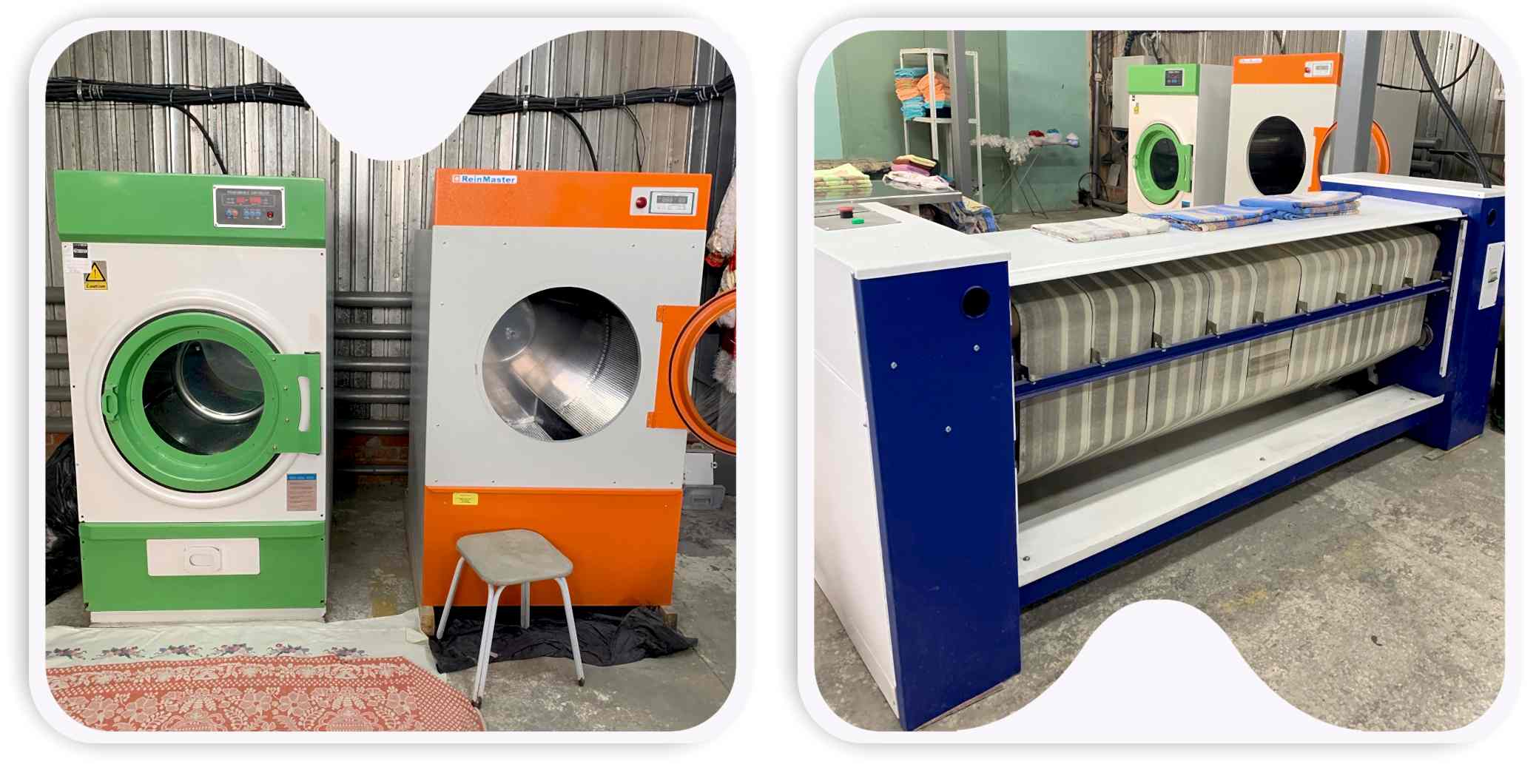 Прачечная оборудована профессиональным мощным оборудованием. Качество стирки на профессиональном оборудовании Pin-Up выше, чем стирка в бытовой машинке.